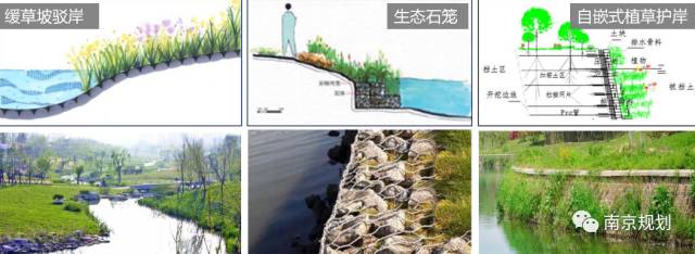 综合考虑河道水系现状、周边建设用地情况等,“专项规划”确定43条近期需要岸坡生态化改造的河道,总长约为87.47km。改造形式包括:缓草坡驳岸、生态石笼驳岸、自嵌式植草驳岸等。
